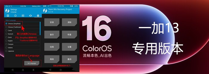 于C16底层的TWRP刷机文件,目前ROM乐园测试在一加13手机上运行成功。理论上也可