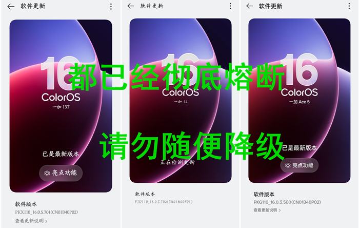 可以通刷ColorOS16.0.3.50X之前的全部系统版本,理论上一直不会熔断;请勿刷写新版,刷