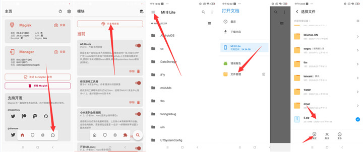 理等内容,点击【文件管理】这就进入了内置卡了,找到我们之前放进去的1.zip模块,点