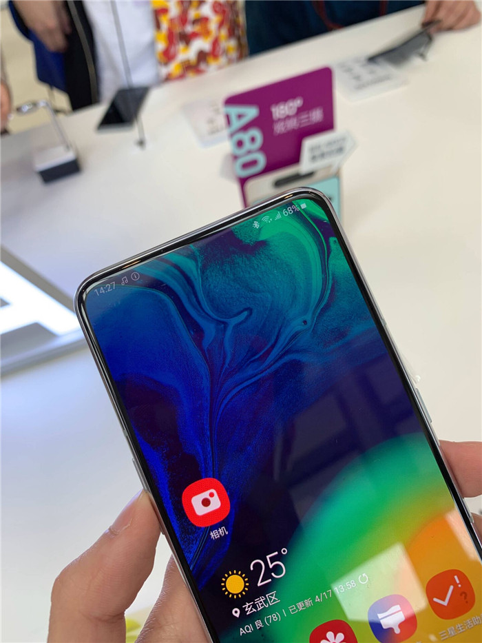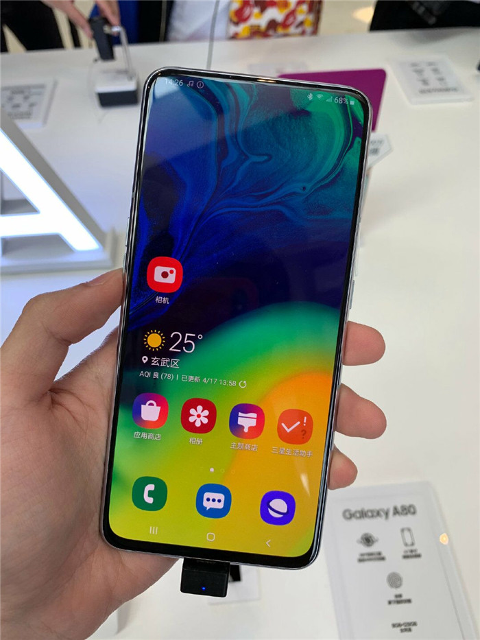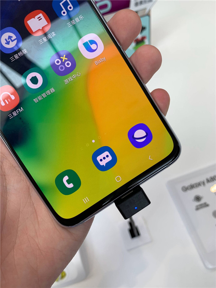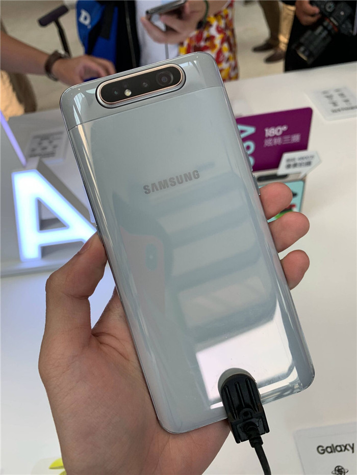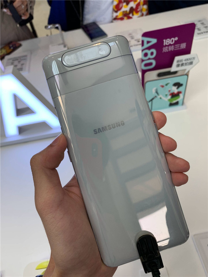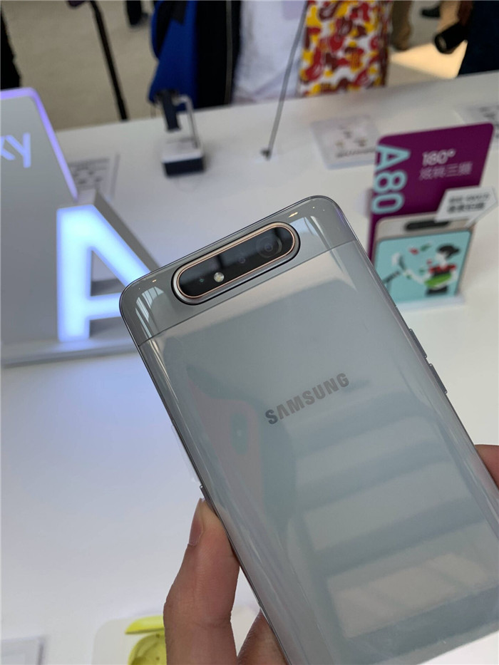 这次A系列的推出不知道后面反响如何。现在全面屏已经是趋势我们不由想到前段发布的Galaxy A80,最值得关注的是,Galaxy A80 搭载了一块 6.7 英寸的 SuperAMOLED 屏幕,配备了屏幕指纹,正面没有刘海遮幅或摄像头开孔,非常接近于所谓的全面屏形态,在这里小编要与大家分享一下这款手机的真机图赏了,这款手机整体上还是不错的。首发了骁龙730的处理器,这是个关注点,下面我们就一起看看他的外观你是否喜欢吧