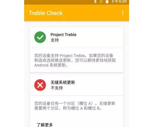 下载这个Treble Check软件,安装后,打开如下图即可清楚看到自己的手机是否支持PT