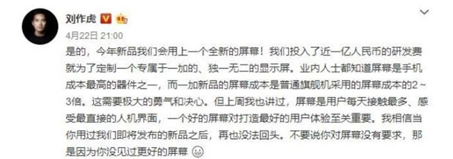 屏幕方面,刘作虎表示他们今年下了很大功夫,在屏幕显示上大有提升,而他本