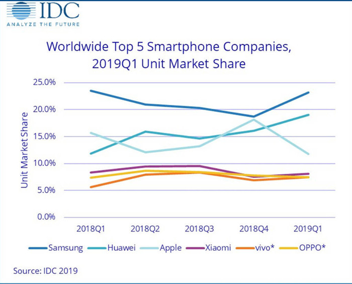 2.华为:销量5910万台,同比增长50.3%,市场份额19%