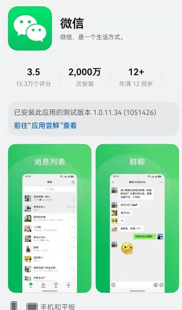 微信鸿蒙版安装量突破2000万