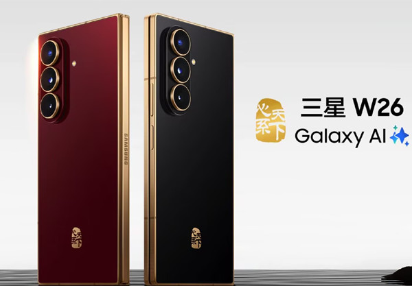 依旧搭载定制的高通骁龙8至尊版For Galaxy移动平台,提供了16GB+512GB起步、最高16GB+1TB的存储组合,以及4400mAh电池。One UI 8 系统。影像方面则配备了1000万像素前摄,由2亿像素主摄+1200万像素超广角+1000万像素长焦组成的后置三摄模组。外屏盖板和机身背板均采用第二代康宁大猩猩玻璃陶瓷材质,机身边框以升级版增强型装甲铝材质锻造,覆以立体方格花纹装饰,坚韧稳固而不失精巧。三星W26在色彩的选择上,以“玄曜黑”“丹曦红”两款全新配色带来更具东方气质的形象。值得一提的就是机身相对更加轻薄,对比前几代心系天下系列: