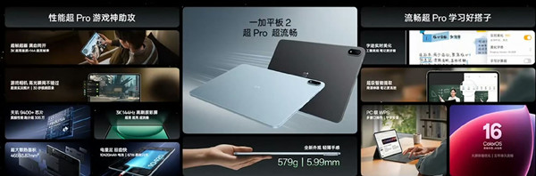 其他:厚 5.99mm,重 579g,深灰、天青 2 款配色,六扬声器,首发ColorOS 16系统。全新 ColorOS 16 支持前台同时运行五个应用,多任务处理轻松应对。一加平板2还带来实时字迹美化、超级智能提取等实用细节功能;并搭载PC级WPS,是学生的学习好搭子。