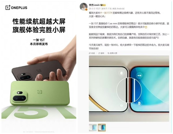 一加官方在微博宣布15T手机本月即将发布,号称新一代「小屏大魔王」,是为所有小屏党打造的“Dream Phone”。