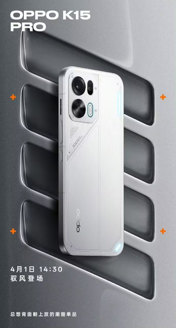 OPPO正式公布K15 Pro系列外观配色,包含赛博光翼、起源灰、光尘粉、金色传说四款,新机定档4月1日14:30线上发布。该系列拥有岚影呼吸灯、金属中框设计,还推出可替换磁吸镜头盖,OPPO联合拓竹科技将在MakerWorld社区开源其镜头模组3D模型文件。