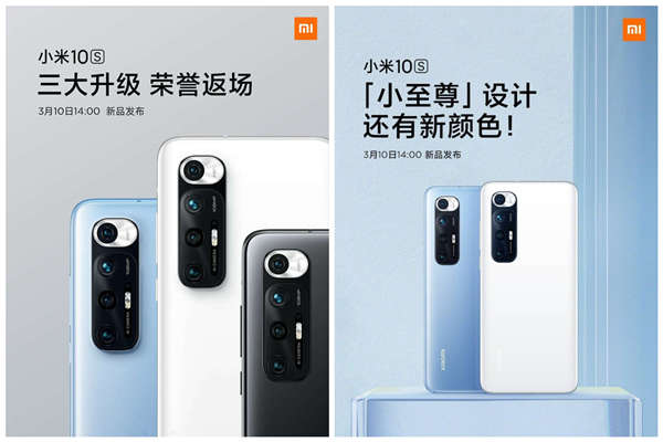 小米官宣小米10s将于3月10日发布,将于3月10日下午发布 ,采用了小米10Ultra的背部 外观,骁龙870处理器,在屏幕、影像、音频、充电续航等方面均有所加强。