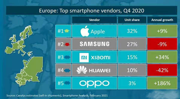 第四季度的欧洲市场中苹果反超三星登顶第一、华为暴跌42%,小米暴涨34%吃掉大部分 华为失去的市场、OPPO也开始发力。其中表现最为出色的可能就是小米了,然而你以为 小米仅仅是这点成绩吗?