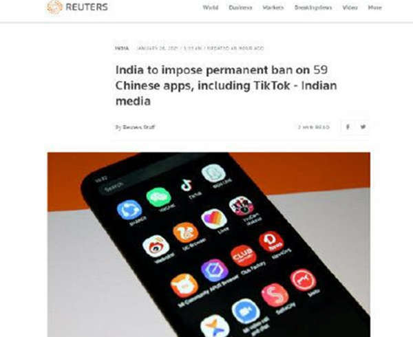据外媒报道,印度电子和信息技术部发布最新通知,将在今年6月永久禁止59款中国手机应用程序,包括TikTok(抖音海外版)、百度、Wechat(微信)和UC浏览器等。