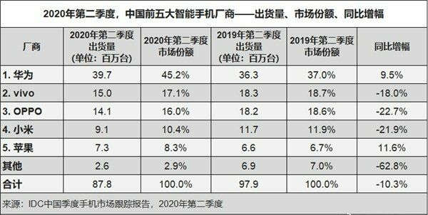 从数据中不难看出华为有点猛呀,基本上都占了差不多一半的市场份额,这次也是华为在国内的市场再创历史新高,也难怪的,小编都发现现在身边的人用华为手机的变得越来越多了.