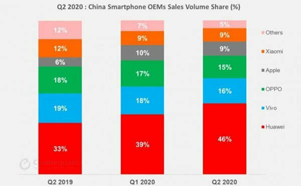 华为46%的份额实属高的恐怖,全球前三的三星在Others中,雷总"十个季度内,国内市场重回第一"的美梦已宣告破灭。真的一些情怀太厉害了