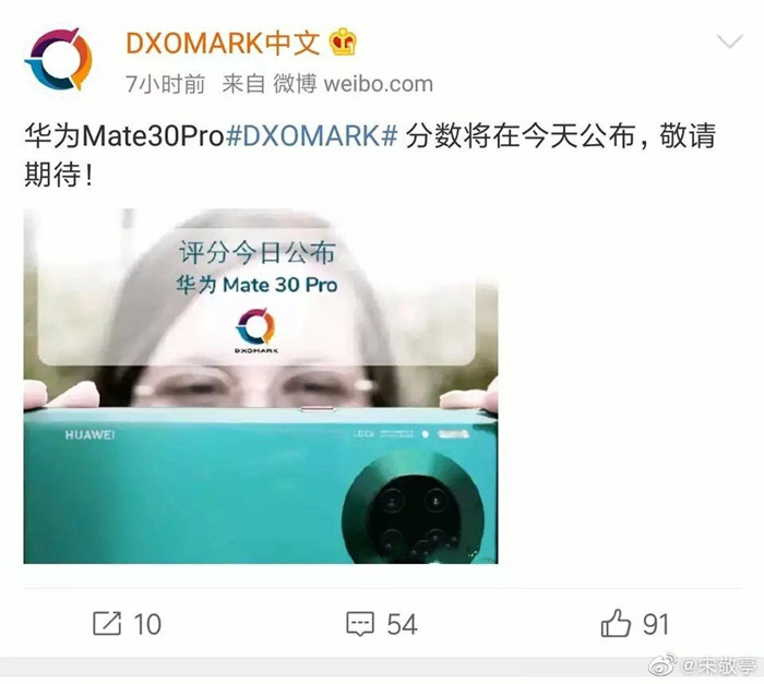 华为Mate30Pro的相机得分新鲜出炉。余承东公布了最新DxOMark排行榜,Mate30 Pro综合得分121,位居第一,照片得分131,视频则为100,