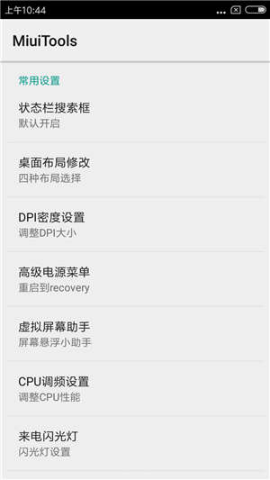 解锁之后刷入对应的第三方recovery,请勿用官方recovery卡刷 首次刷机,建议twrp里格式化data一次,以免出现开机卡米 ROM均真机实测,请放心刷入,首次刷机格式化data1次 基于官方MIUI9.2稳定版本 支持分身等各种5.1特色 完美保留系统完整性,优化待机 多项优化,支持官方新增N多特色 UI增强,美观大气,系统轻快 桌面进行重新排布,刷完十分清爽 融合之前版本全部特色,完美 MIUI-自带APPS升级到官方最新 适合追求稳定,不经常刷机的用户 破解MIUI主题,无需登录下载 破解MIUI限制,卸载软件不卡开机 破解系统默认加密,解密system 破解系统签名,更好安装第三方软件 加入杜比顶级音效,开机即用 加入授权为SuperSU授权,纯净 加入系统级别高级电源管理 加入桌面天气农历双显示模式 加入Busybox指令集多种支持 加入自编译MiuiTools高级设置 支持桌面布局自切换功能 支持4X5,4X6,5x5,5X6切换 支持状态栏搜索框自定义开关 支持DPI数值自定义大小 首次使用,需给予Miuitools Root权限 请勿将数值设置的过大或过小 支持高级电源菜单管理 支持快速开机重启功能 支持一键重启到recovery 加入中兴屏幕助手 Lollipop风格版本 支持开启和关闭,长按高级电源菜单 加入全新CPU调频管理,多设置模式 加入USB挂载功能 挂载MTP等模式 加入来电闪关灯,默认开启 优化待机能力,更加持久给力 优化内存中用,极致超大RAM 优化手机射频,降低手机电量耗损 优化流畅性,全网最佳定制系统