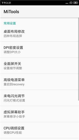 解锁之后刷入对应的第三方recovery,请勿用官方recovery卡刷 首次刷机,建议twrp里格式化data一次,以免出现开机卡米 ROM均真机实测,请放心刷入,首次刷机格式化data1次 默认黑域支持,遇到软件不能后台,请设置黑域屏蔽名单 默认不激活Xposed,需要的刷入beta2:https://pan.baidu.com/s/1p7DHAAu1TU9z9ztJlAEfzg 基于官方MIUI10.3稳定版制作 新增秒截图,截图快速无需等待 为全机型添加全面屏开关切换 自定义开启和关闭,并修复错位 Xposed需要激活,请务必刷入Beta2 主题全新改版,升级最新,更多支持 破解下载管理为无限会员,高速下载 深度优化,值得长期使用高质量ROM 新增黑域补丁版,更好管理唤醒 完美保留系统完整性,优化待机 桌面进行重新排布,刷完十分清爽 融合之前版本全部特色,完美 MIUI-自带APPS升级到官方最新 适合追求稳定,不经常刷机的用户 破解MIUI主题,无需登录下载 破解MIUI限制,卸载软件不卡开机 破解系统默认加密,解密system 破解系统签名,更好安装第三方软件 加入黑域补丁版,更好管理唤醒 加入蝰蛇顶级音效,开机即用 加入授权为SuperSU授权,纯净 加入系统级别高级电源管理 加入桌面天气农历双显示模式 加入Busybox指令集多种支持 加入自编译MiuiTools高级设置 支持桌面布局自切换功能 支持4X5,4X6,5x5,5X6切换 支持状态栏搜索框自定义开关 支持DPI数值自定义大小 首次使用,需给予Miuitools Root权限 请勿将数值设置的过大或过小 支持高级电源菜单管理 支持快速开机重启功能 支持一键重启到recovery 加入中兴屏幕助手 Lollipop风格版本 支持开启和关闭,长按高级电源菜单 加入全新CPU调频管理,多设置模式 加入USB挂载功能 挂载MTP等模式 加入来电闪关灯,默认开启 优化待机能力,更加持久给力 优化内存中用,极致超大RAM 优化手机射频,降低手机电量耗损 优化流畅性,全网最佳定制系统