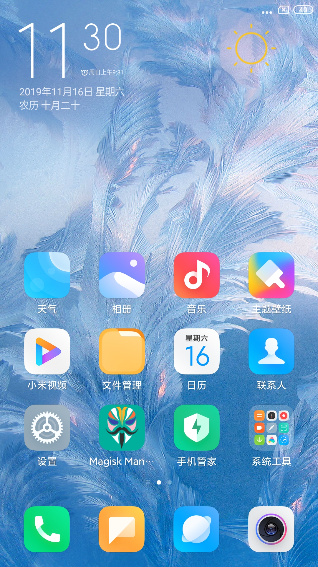*设备必须保证已经解锁,再刷入一款适合自己手机的TWRP-RECOVERY *基于MIUI11 9.11.16开发版制作 *加入最新Magsik权限,完美ROOT *支持分屏,MIUI特色 *最新开发流畅推荐版本 *支持无限迅雷会员 *支持安卓核心,system完美破解 *支持秒截图功能 *长久待机省电使用 *支持字体免费 *精简到位,性能全局优化 *绿色系统,桌面整洁 *小清新风格整体干净 *流畅极速顺滑如丝 *各种强悍功能自行体验 *优化内存占用,轻快省电 *去除系统卡米限制 *视野更广阔视野的任务管理 *更智能的小爱同学 *AI预加载,快速启动 *传送门2.0,一键直达 *系统深度级别高级电源菜单 *桌面天气可显示农历 *默认开启宽容模式 *busybox默认添加 *成熟的现代设计语言 *全新的小米兰亭Pro *MIUI11推出动态字体系统 *万象息屏炫酷而且赋予了个性化需求 *动态自然音效体系 *Mi Work 工作套件 *Mi Go 出行套件 *MIUI 全新儿童空间 *地震预警手机强提示弹窗预警地震 *亲情守护与家人建立了一道纽带 *去除很多MIUI无用组件 *添加免ROOT授权管理,安全中心不提示 *破解安卓核心程序 *自动整理无用缓存 *优化内存占用,适度提高可用内存 *优化内置SD卡读取速度 *优化电池续航,更省电 *优化GPU渲染 *优化WIFI休眠策略 *sqlite3数据库优化 *提高桌面滚动流畅度 *miui11抢先体验 &更多强大功能等待大家发现