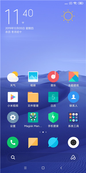 1.刷机前请务必解锁BL! 2.建议刷机前备份好个人资料 3.如果你开启了我的小米-云服务-查找手机,请双清刷机前关闭 4.Rom已经过专业测试,如果刷机后出现密码,这是你自己的MIUI账号,请自己到MIUI论坛,找回登录密码 5.刷机过程中请保持手机电量充足,请勿中途断开; 6.第一次启动可能比较慢,请耐心等待 【ROM 介绍】 基于官方MIUI11最新开发版制作 快过闪电版流畅,默认无界主题 底层沉淀优化,轻快好省 精简miui官方多余无用软件,系统更加流畅 桌面支持天气显示 完美合并系统全部odex 完美破解主题,无需登录账户 去除系统更新按钮 优化主题破解代码,更完全 优化手机射频,降低手机电量耗损 ★.添加无限迅雷 ★.添加全新Magisk授权, ★.添加秒截图功能 ★.添加安卓核心破解,签名不一致也能随意覆盖 ★.添加高级电源管理快速重启手机或recovery ★.添加屏幕助手功能,桌面单手操作,代替屏幕底部三按键 ★.添加来电闪关灯,电话短信通知,闪光提示 改善滑动平滑效果、触控敏感度、滑动速度 修正刷机脚本相关权限 优化内置SD卡读取速度 优化WIFI休眠策略,优化一键清理功能 优化状态栏内存占用 sqlite3数据库优化 提高桌面滚动流畅度 保留官方稳定流畅性 信号优化,rom的省电优化 完美体验 亲测流畅稳定 其他小细节调整,等你体验