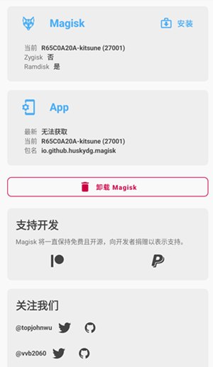 德尔塔Magisk属于正式版本Magisk的一个独立分支,也经常被大家称之为狐狸面具,集成了正式版Magisk的全部功能,并且独家首发优化隐藏root功能, sulist等功能一键白名单,隐藏root权限,解决各种银行/生活等APP检测root无法启动问题。已经迭代到27版本,支持安卓6-安卓16等不同手机设备; 新系统推荐V27系列版本,老旧的安卓,我们这里推荐大家使用旧版的Magisk德尔塔版本,暂时主线已停止维护 Magisk德尔塔V27001特色功能 1、跟随官方该面具Magisk更新到Kitsune(27001)新版 2、自带sulist和Magisk hide功能,无需模块二次修改 3、完整的授权ROOT权限,可对任何APP进行黑名单授权 4、深层次躲避ROOT检测,可实现银行/安全/支付等APP运行 5、支持不同品牌手机,如小米三星联想一加华为等可解锁BL设备 6、由ROM乐园官方发布,感谢大家对ROM乐园的支持,完全免费下载 7、因为机型或者BL解锁等影响,如自行不会操作的,可联系ROM乐园官方 8、德尔塔Magisk图片仅供参考,不同版本存在差异,以实际资料为主 9、提供完整的卡刷root包+APK直接安装版,自由选择 10、推荐稳定兼容安卓版本:安卓6-安卓16全部手机 更新日志: 暂无 已经有root的用户,自行下载德尔塔版本的卡刷包,直接使用面具模块,刷入卡刷包后,重启你的手机,直接安装最新版本APK即可切换成功 未ROOT的用户,请维补boot分区后,生成magisk_root文件,使用ROM乐园ADB工具箱刷入到手机即可获取root权限,参照下面命令 fastboot flash boot magisk_root.img & fastboot reboot ROM乐园ADB工具箱下载:http://www.romleyuan.com/lec/read?id=1107